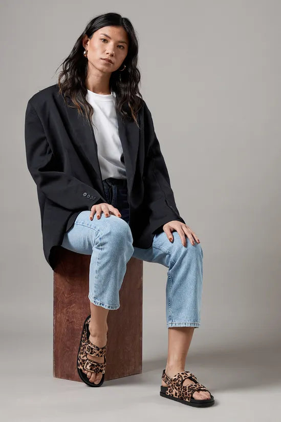 Reid Faux Leopard Print Suede Double Buckle Slingback Footbed Sandals